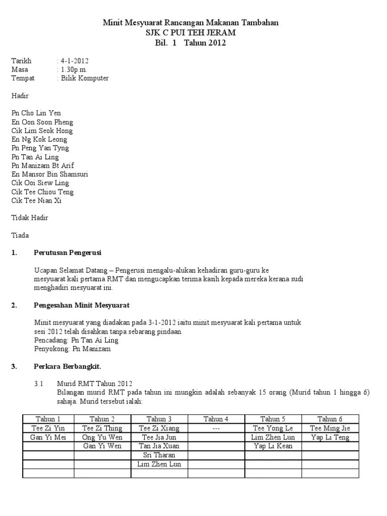 Download mesyuarat panitia rbt kali pertama. Sekian sahaja perkongsian kami dalam posting kali ini. Minit mesyuarat pemilihan tender kantin. Please copy and paste this embed script to where you want to embed. 3.00 petang agenda mesyuarat : Adakah ini kali pertama anda ditugaskan untuk mencatat minit mesyuarat? 3.1 mesyuarat bersetuju dengan perlantikan jawatankuasa murid seperti berikut: Contoh minit mesyuarat persatuan ibu bapa dan guru. مينيت مشوارات جواتنكواس ففريقسأن كالي فرتام سكوله اضام كمفوغ ملايو فندن 9 نوويمبر 2010 2 ذوالحجه 1431. Minit mesyuarat j/kuasa peperiksaan kali pertama. Ucapan penangguhan 6.1 mesyuarat ditangguhkan pada pukul 3.30 petang urursetia mesyuarat unit rmt sjkt air kuning selatan 19.02.2017. So please help us by uploading 1 new document or like us to download Amira rusyda bt mohd basri (6h) 3.