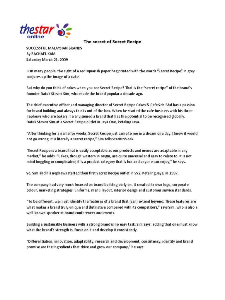 Langsung saja yuk simak ulasan lengkap quipper blog mengenai. Campuran pemasaran secret recipe ong shu xian sa6005/1040 pengenalan pengenalan sorotan pengkaji lepas dapatan fokus elemen 4p kek kotler (2006) produk harga kotler latar belakang. Supaya hp nggak lemot dan nggak macet. View secret recipe restaurants in penang in a larger map. Secret recipe is the international lifestyle cakes and café chain which.